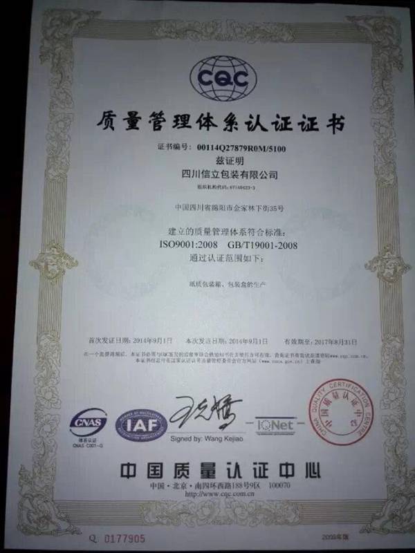 包裝質(zhì)量管理體系認(rèn)證證書(shū)