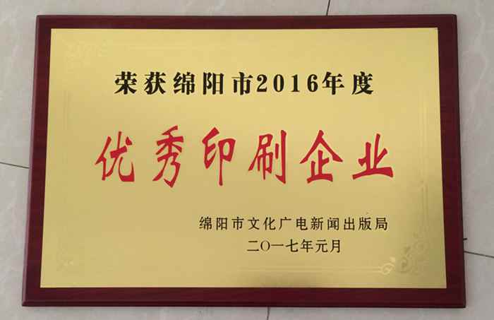 公司榮獲綿陽市2018年度優(yōu)秀印刷企業(yè)